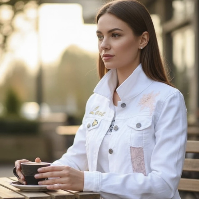 Veste en jean blanche customisée dentelle taille M